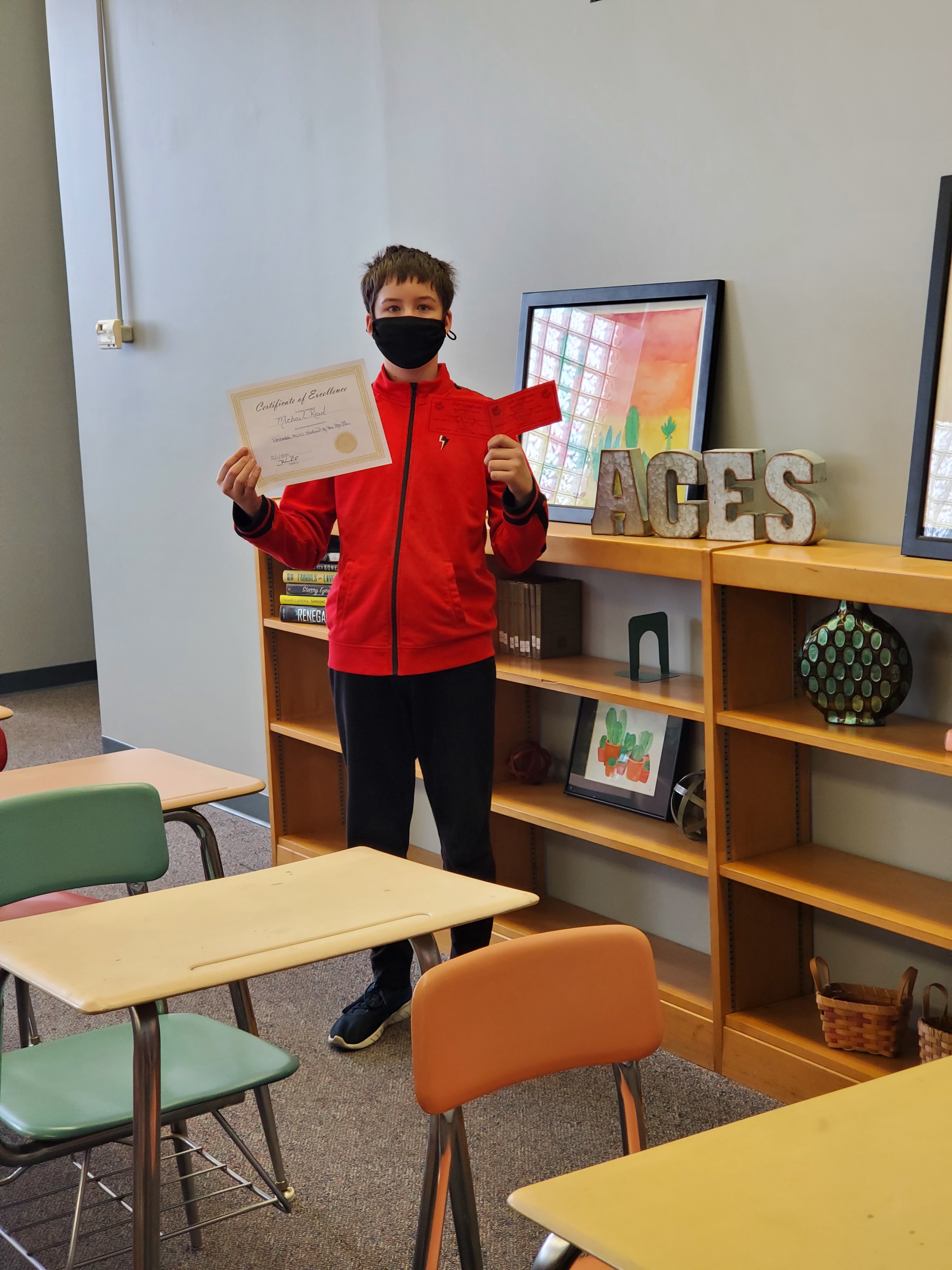 Michael Read, 7th Grade “Michael is a very polite and engaged student. He regularly completes homework, asks questions when he doesn't understand, and participates in class. We were all so happy to get to know Michael when he returned to in-person learning. Congratulations Michael!”